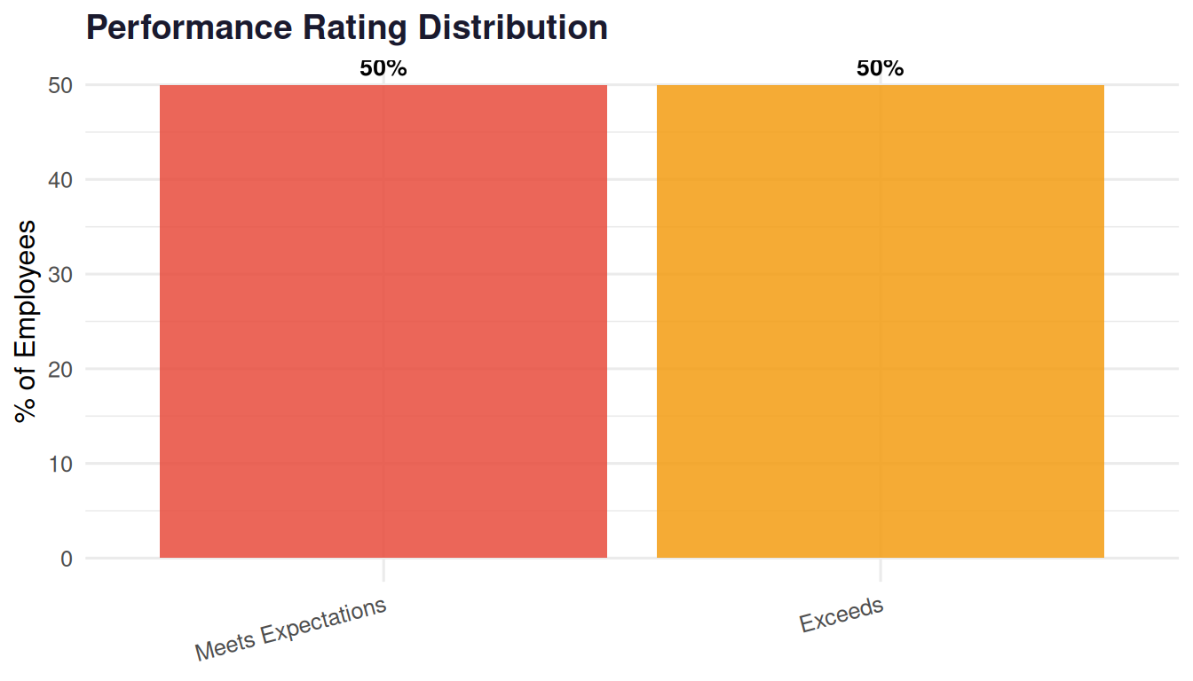 labs(title = "Performance Rating Distribution", x = NULL, y = "% of Employees") +